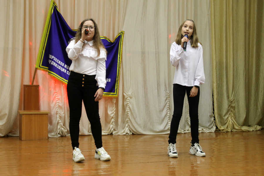 Например, 10 школа подготовила целую театральную постановку: девочки-школьницы и пели, и танцевали, и читали тематические стихи.