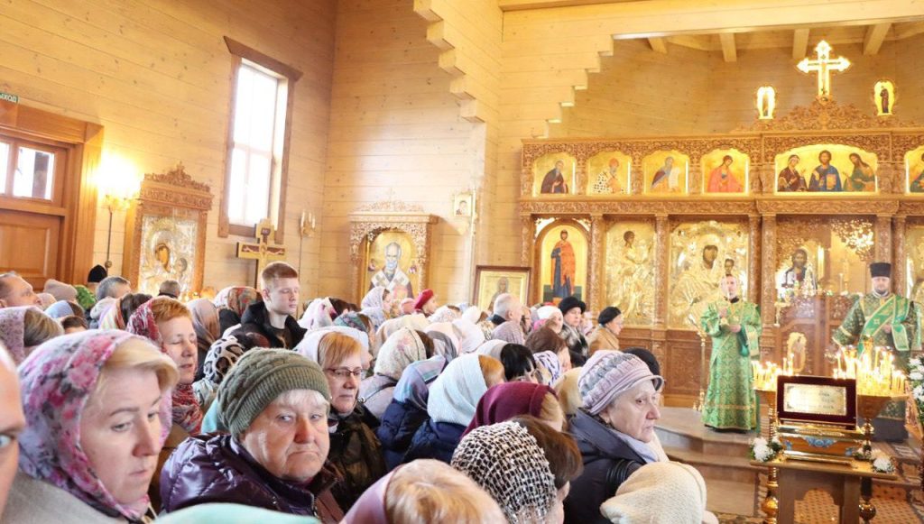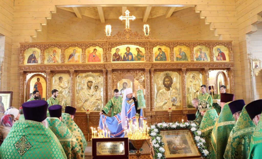 Патриарший экзарх всея Беларуси совершил Божественную литургию в храме преподобного Паисия Святогорца в Слуцке.