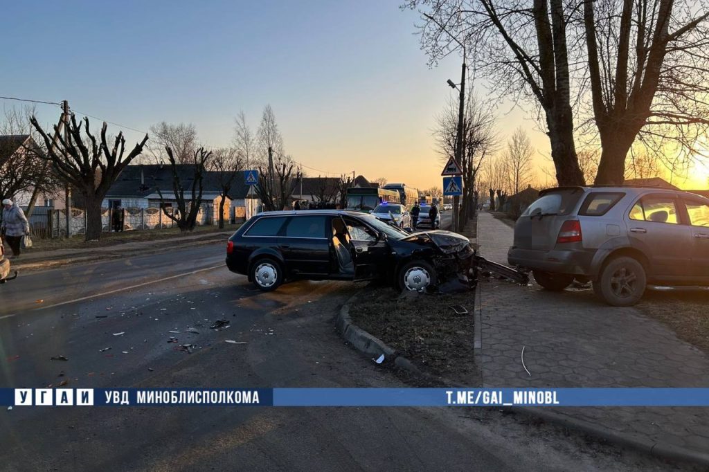 17 марта около 7.30 на ул. Ленина в г. Слуцке 41-летняя местная жительница управляя автомобилем Аudi А6, совершила наезд на остановившейся в полосе движения для осуществления левого поворота автомобиль Volkswagen под управлением 37-летнего водителя. В результате ДТП автомобиль Audi выехал на полосу встречного движения, где произошло столкновение с двигающимся во встречном направлении автомобилем Кia.
