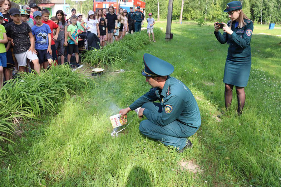 На прошедшей неделе спасатели посетили детский оздоровительный лагерь «Зенитчик» и пришкольный лагерь, базирующийся в Козловичской средней школе. Для воспитанников работники сектора пропаганды подготовили настоящую «Пожарную лабораторию». Все присутствующие смогли увидеть ряд опытов: горение масла на сковороде, короткое замыкание электропроводки, тление постельных принадлежностей, что позволило весьма доходчиво и наглядно напомнить детям, как правильно действовать в той или иной ситуации. Желающая детвора смогла освоить не только теоретические, но и практические знания по использованию огнетушителя.