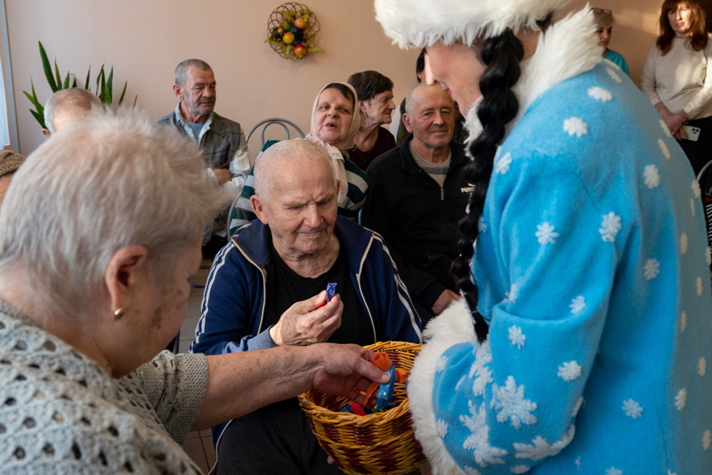 И, конечно, какие же новогодние праздники без подарков. Кроме сладких подарков за средства Слуцкой районной организации Белорусского фонда мира для Слуцкого СПЦ приобретен комплект мебели, для отделения круглосуточного пребывания граждан – бытовая техника.