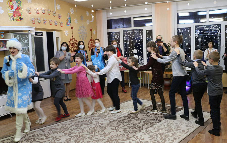 Много тепла, праздничного волшебства подарила эта встреча ребятишкам: под музыку они «водили паровозик», танцевали возле елки, читали стихи. В подарок ребята получили сертификаты на бесплатные покупки от универмага «Слуцк», а также канцелярские принадлежности.
