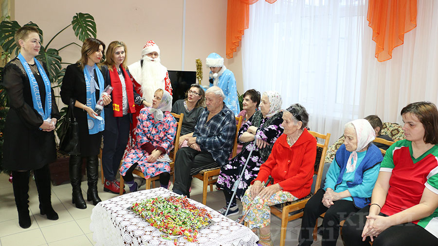 Представители Слуцкой районной организации  Белорусского фонда мира, районной организации КПБ также поздравили с наступающим Новым годом постояльцев отделения  круглосуточного пребывания для пенсионеров и инвалидов территориального центра социального обслуживания населения Слуцкого района. Какой же праздник без сладкого! Гости привезли к новогоднему столу слутчан, которые находятся в отделении, вкусные конфеты.