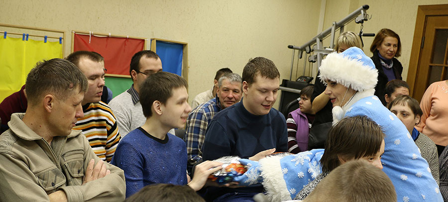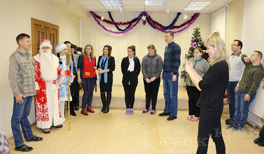Душевно, весело, трогательно прошла встреча и в отделении дневного пребывания инвалидов территориального центра соцобслуживания населения Слуцкого района. Ребятам подарили сладкие подарки, а еще было много музыки, стихи, танцы, хороводы с Дедом Морозом и Снегурочкой. И чудесное  настроение приближающегося сказочного праздника.