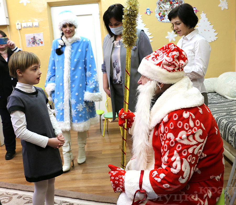 –Самый-самый настоящий, исполняет желания! – отвечали председатель Слуцкой районной организации Минского областного отделения Белорусского фонда мира Елена Гаврилович, заместитель председателя этой организации Людмила Гуринович,  первый секретарь Слуцкой районной организации КПБ Оксана Подобед. Они приехали в гости к ребятам с добрейшим Дедом Морозом, очаровательной Снегурочкой, и, конечно, привезли новогодние подарки.