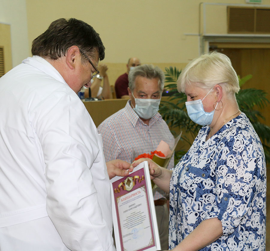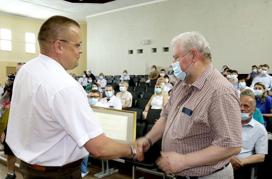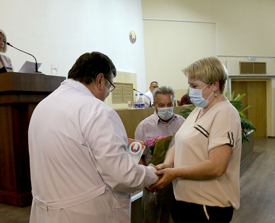 Андрей Янчевский вручил почетные грамоты Слуцкого райисполкома: врачу-хирургу (заведующему) отделения гнойной хирургии Юрию Ровба, врачу-неонатологу отделения для новорожденных  детей Светлане Францкевич. Благодарностями председателя райисполкома отмечены заведующий Исернской больницы сестринского ухода Игорь Шахлевич,  врач-профпатолог отделения профилактики взрослой поликлиники Наталья Крот, медицинская сестра по уходу за новорожденными детьми отделения для новорожденных Татьяна Качковская, медицинская сестра участковая детской поликлиники Инна Заяц, медицинская сестра травматологического отделения Марина Чайко.