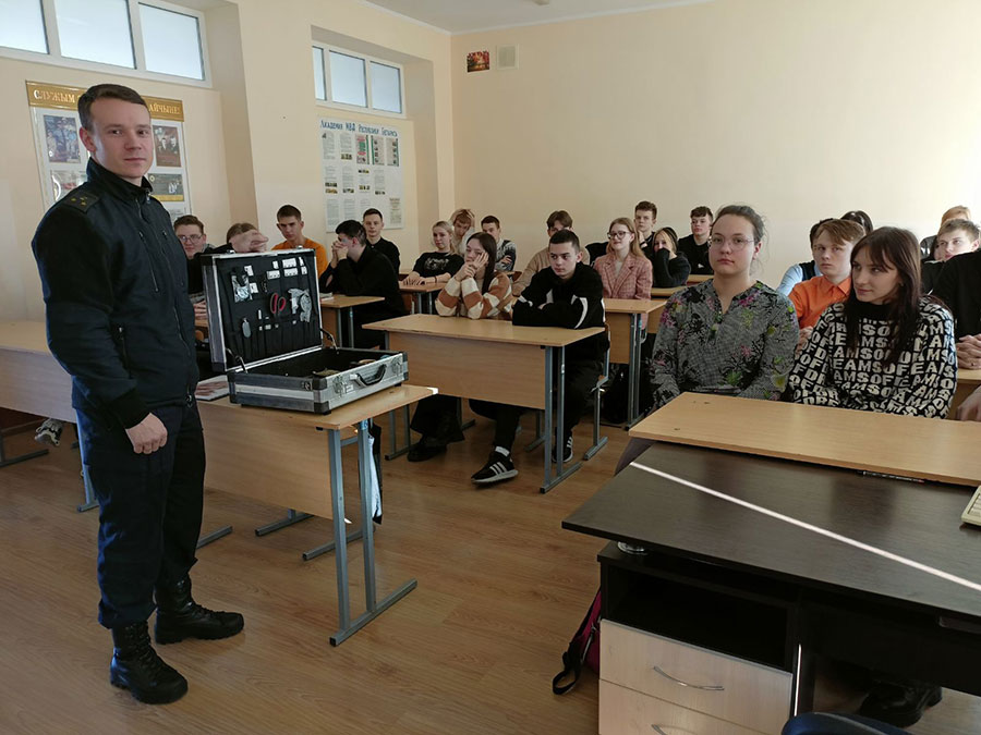 По окончании встреч учащимся рассказали правила поступления на дневную форму получения высшего образования сдедственно-экспертного факультета УО ” Академия Министерства внутренних дел Республики Беларусь” по специальности «судебные криминалистические экспертизы”.