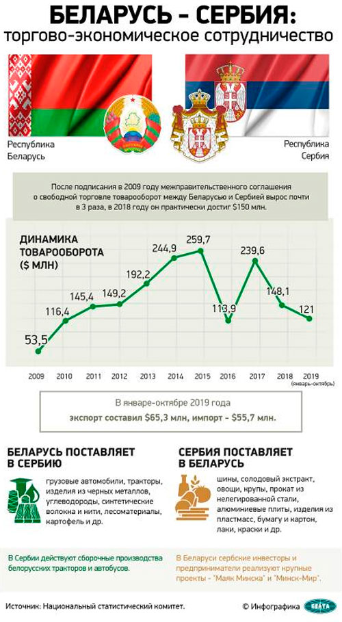 Президент Сербии отметил, что между странами сложились искренние и дружественные политические отношения. Что касается экономического сотрудничества, Александр Вучич уверен: Беларуси и Сербии под силу достичь товарооборота в $500 млн (в прошлом году он составил $148 млн). “Я никогда не забуду ваш визит в 1999 году. Вы приехали, чтобы показать, насколько любите сербский народ и страну”, – добавил он.