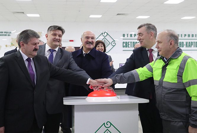 Президент Беларуси Александр Лукашенко посетил Светлогорский ЦКК, на базе которого построен завод по производству сульфатной беленой целлюлозы.