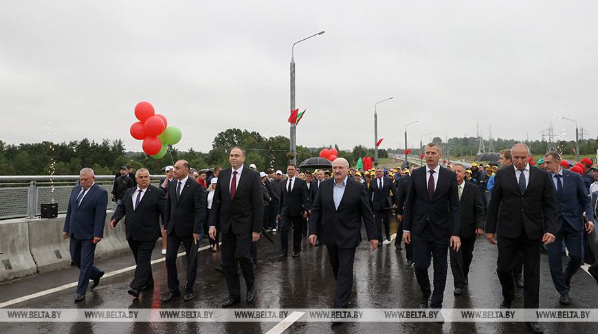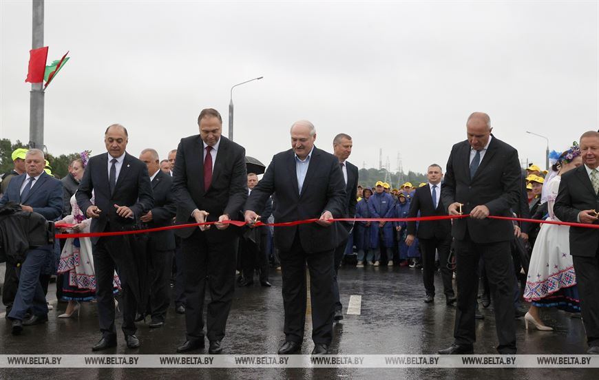 Президент Беларуси Александр Лукашенко принял сегодня участие в церемонии торжественного открытия автомобильного моста Восточный через Неман, передает корреспондент БЕЛТА.