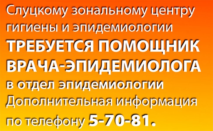 Слуцкому зональному ЦГиЭ требуется помощник врача-эпидемиолога