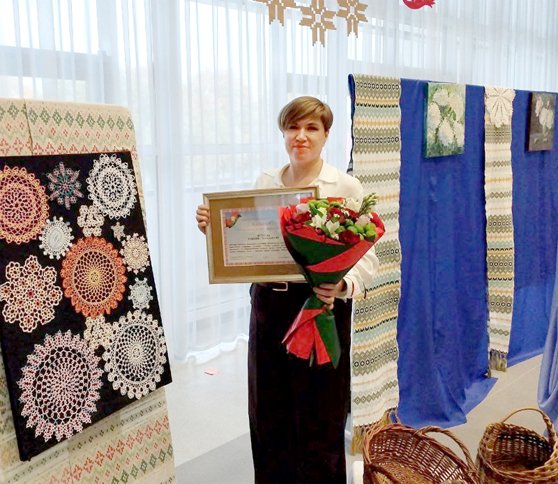 Во время торжества благодарность председателя Минского областного исполнительного комитета вручили мастеру народных художественных ремесел Квасыничского центра ремесел государственного учреждения культуры «Слуцкий районный центр народного творчества» Татьяне Листопад,