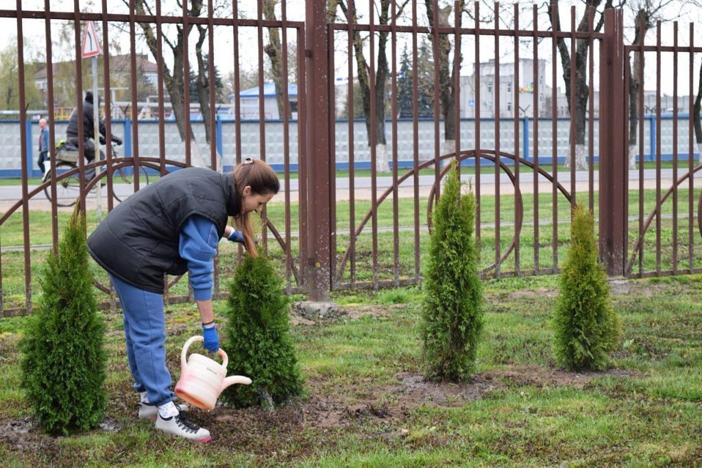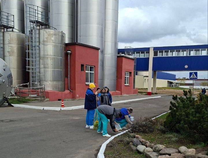 Навели порядок, покрасили бордюры, побелили и посадили молодые деревья на прилегающей к предприятию территории.