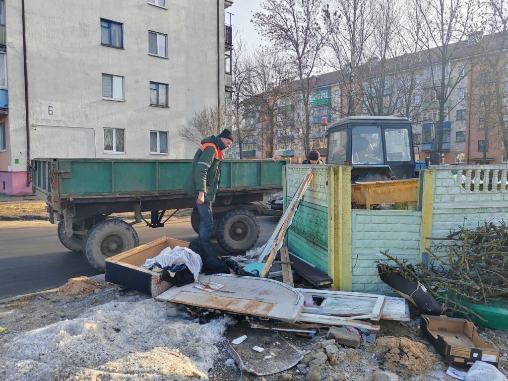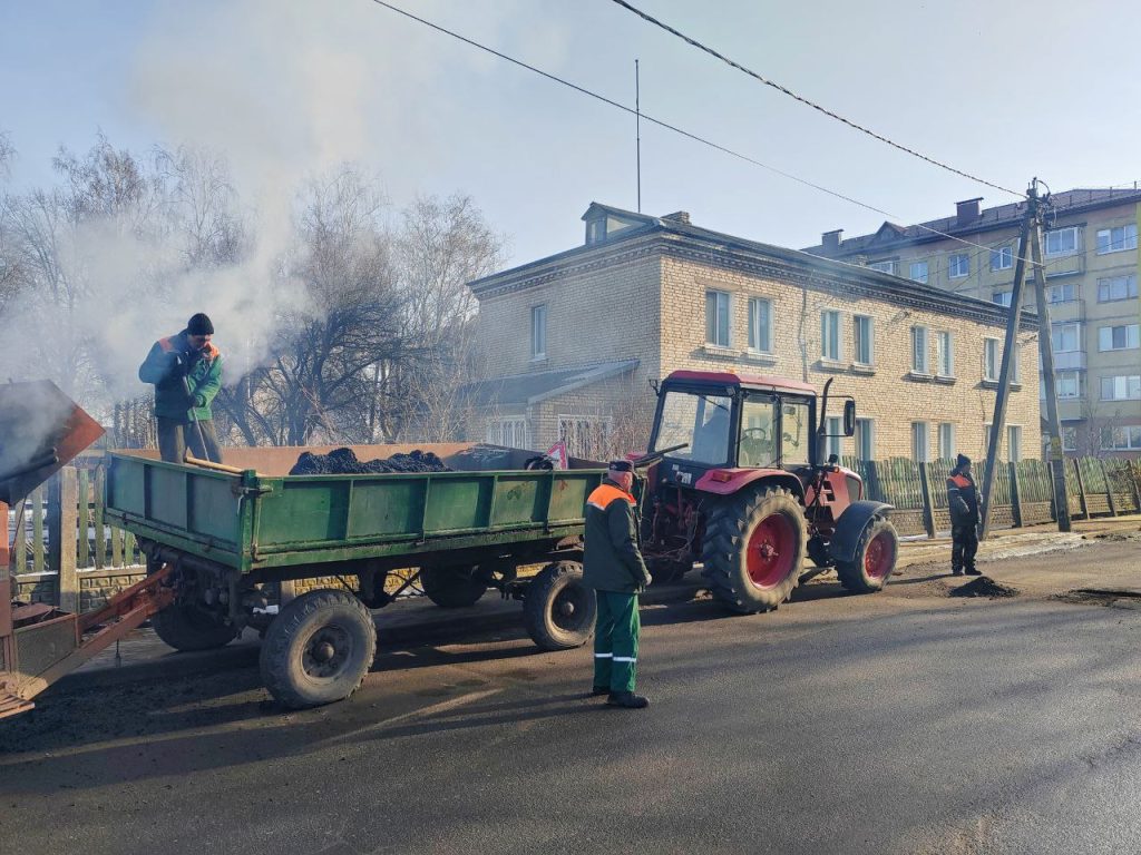 Работники Слуцкого ЖКХ проводят благоустройство придомовой территории по ул. Ленина, 152; ямочный ремонт асфальтового покрытия по ул. П. Коммуны, 11; вывозят крупногабаритный мусор по ул. Кононовича, 6.