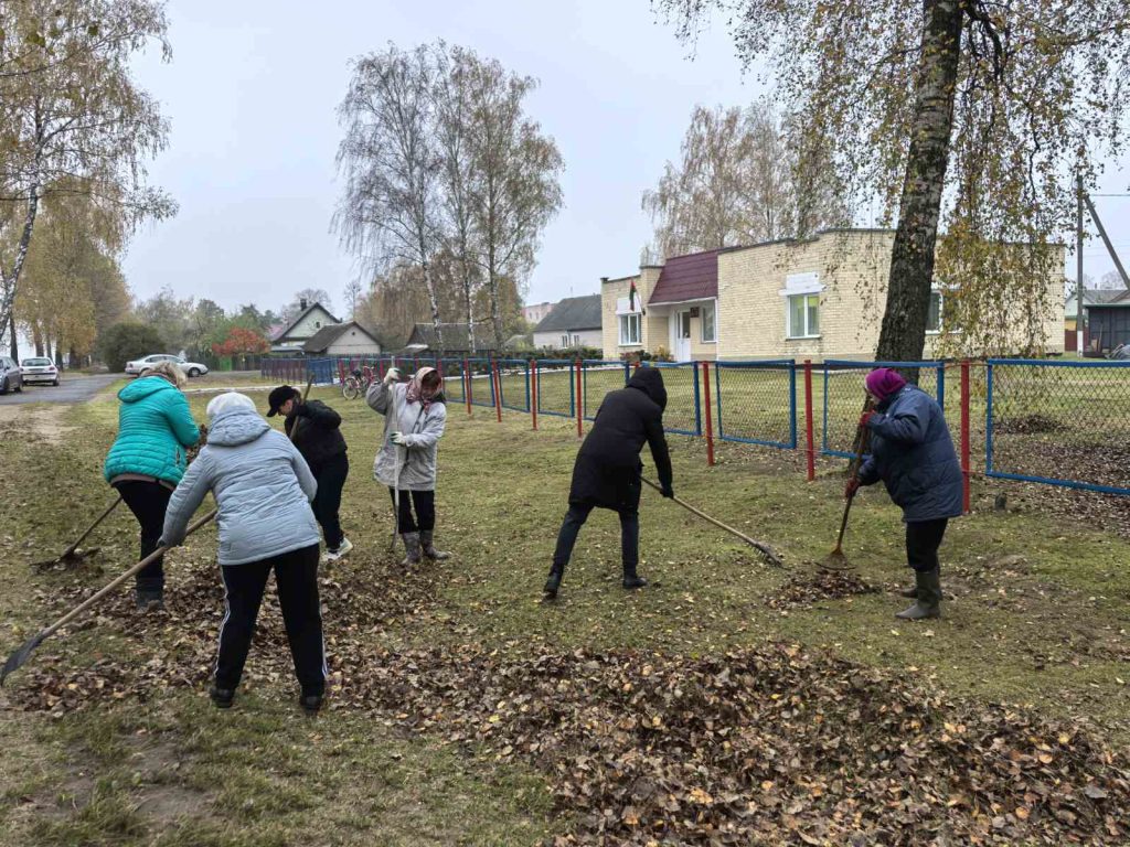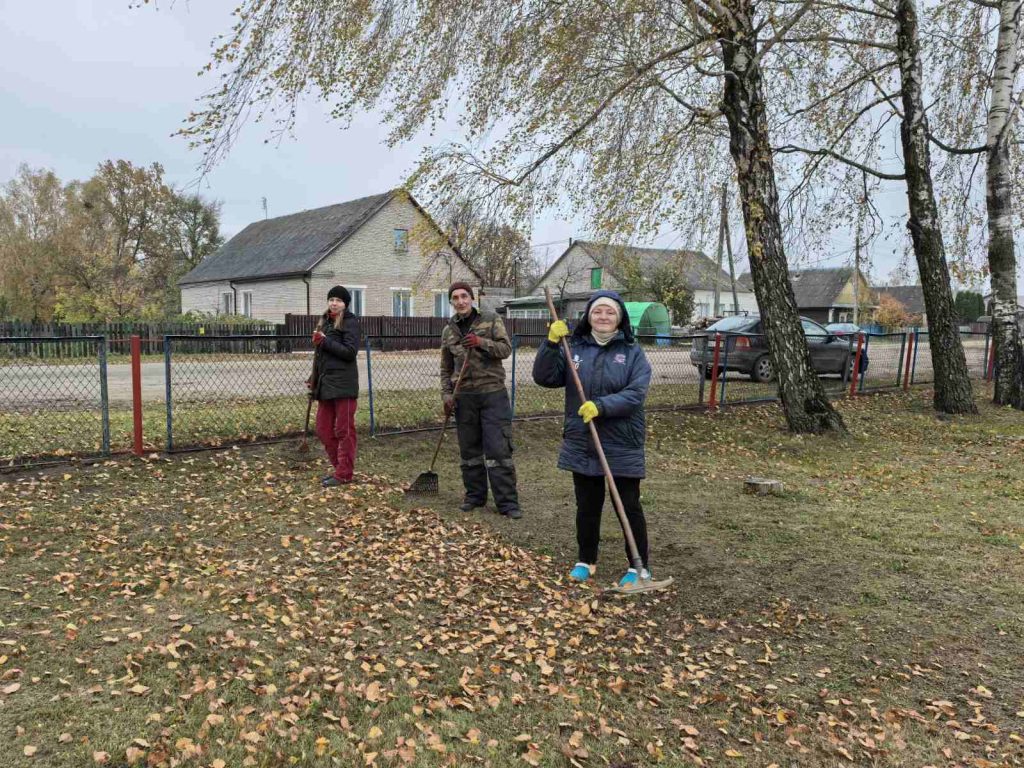 Работники ГУО «Греская детская школа искусств» приняли участие в республиканском субботнике: убрали листву с прилегающей к школе территории, навели порядок на клумбах.