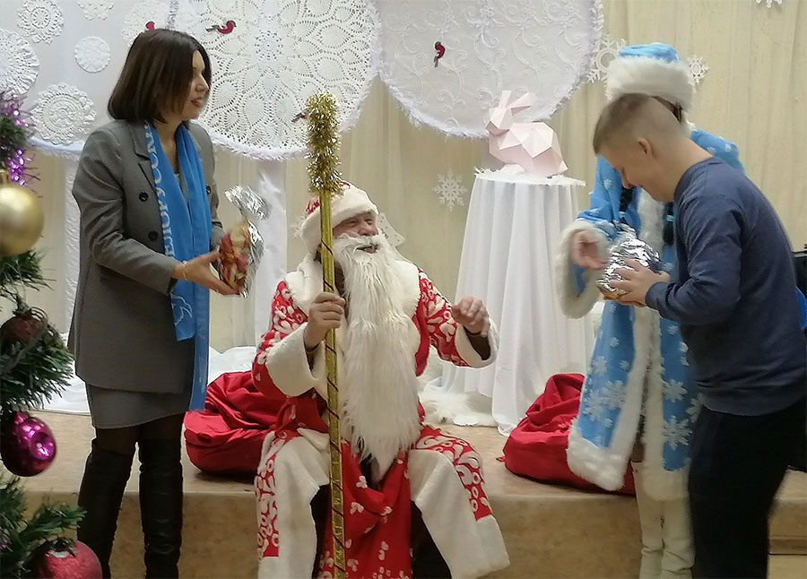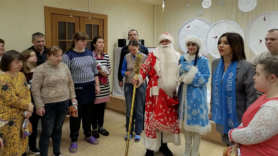 С новогодними подарками члены Слуцкой районной организации Белорусского фонда мира приехали и в отделение дневного пребывания инвалидов Слуцкого территориального центра социального обслуживания населения, где также прошел замечательный праздник.