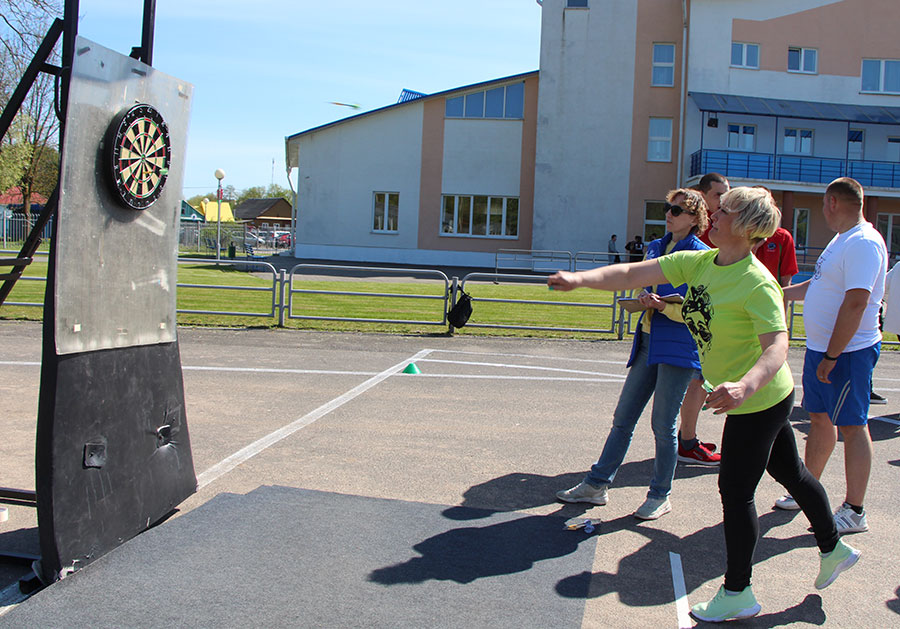 С азартом члены команд участвовали в соревнованиях по бегу, волейболу, дартсу, в гиревом спорте, в бросках баскетбольного мяча, в игре в «городки».
