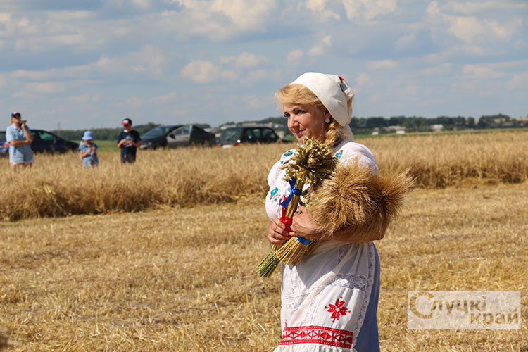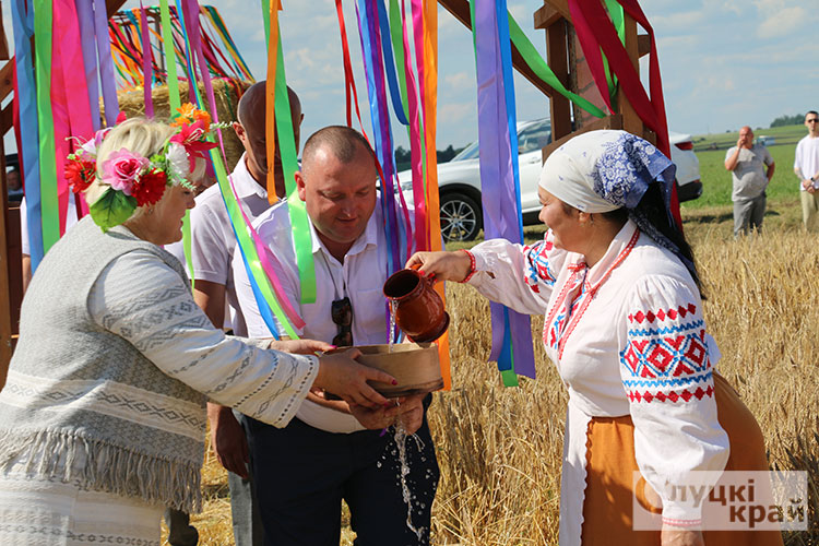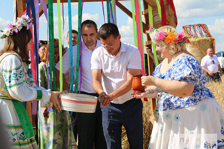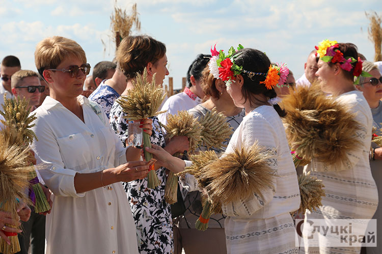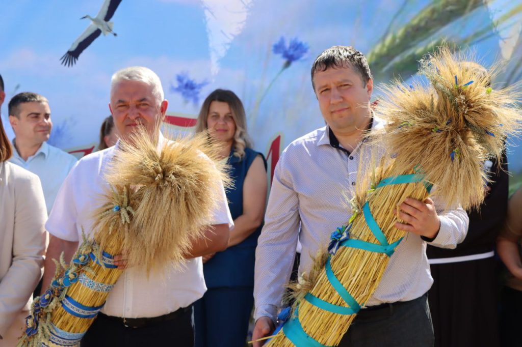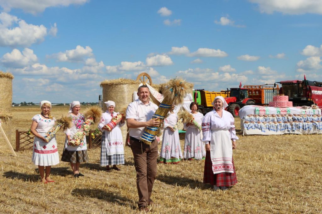 Первый сноп нового урожая вручили председателю райисполкома Владимиру Гоге, а также гостям праздника и хлеборобам. А еще – караваи, чтоб новый урожай был хорошим.
