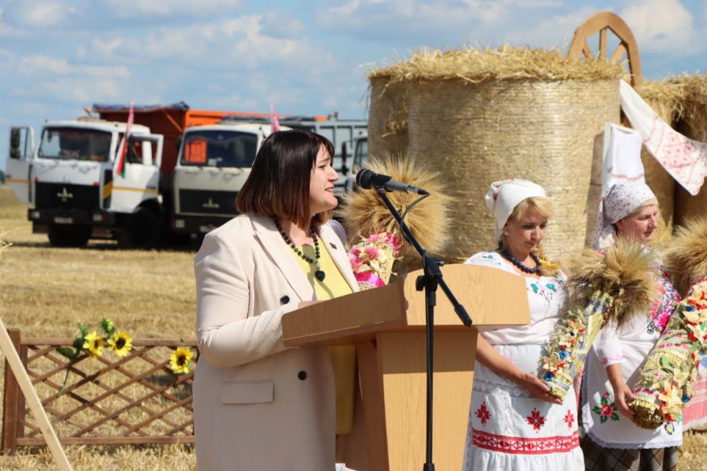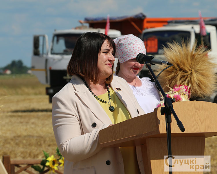 Депутат Палаты представителей Национального собрания Республики Беларусь Наталья Овсянникова приветствовала участников “Зажынак”, поздравила хлеборобов со стартом жатвы и пожелала им успехов и удачи в мирном созидательном труде во имя процветания нашей любимой Республики Беларусь.