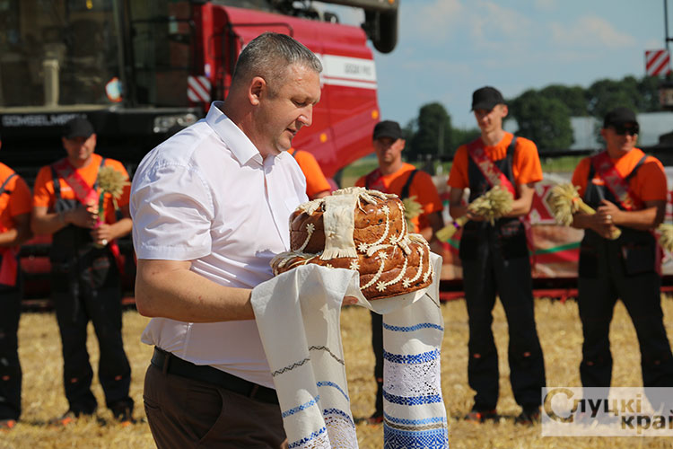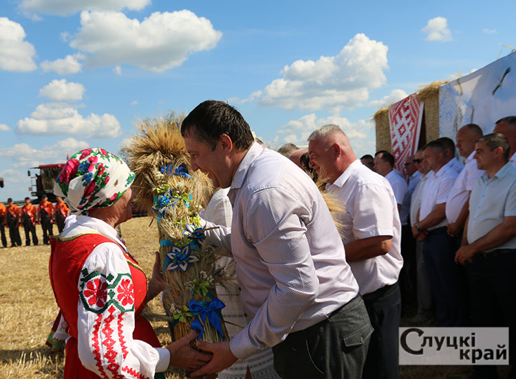 – «Зажинки» – это и праздник и начало уборочной страды – битвы за урожай. Огромная ответственность лежит на вас: качественно произвести уборку. Сработаем хорошо, слажено, соберем в оптимальные сроки зерно – будем с хлебом. Будет обеспечена продовольственная безопасность страны, – отметил председатель Слуцкого райисполкома. – Мы понимаем, сколько и в каких непростых условиях вы работаете. Хотя истинную цену этого тяжелого труда знаете только вы сами. Желаю высоких намолотов и новых трудовых побед! В добрый путь!