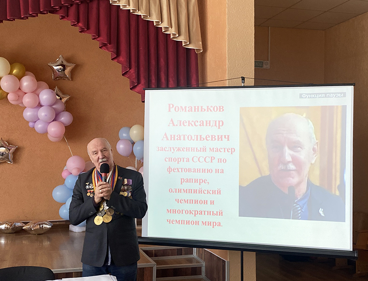Кульминацией встречи стало выступление Александра Анатольевича Романькова, имя которого золотыми буквами вписано в историю мирового спорта. Знаменитый спортсмен, олимпийский чемпион по фехтованию поделился воспоминаниями о напряженных поединках, где победа достается не только благодаря физической подготовке, но и несгибаемой воле, мужеству и любви к своей Родине. По-особому проникновенно прозвучали слова гостя: «Когда ты стоишь на пьедестале выше всех, поднимается флаг и играет гимн – и слезы текут сами. Мы, спортсмены, плачем, так как понимаем, что сделали для своей страны. Я представитель нашей страны, синеокой Беларуси. Я ее защитник. До конца своей карьеры, да и сейчас, я живу этими словами – защитник Родины. Вы тоже теперь защитники Родины. Вы живете на этой красивой земле. Вы не представляете, какая она! Я повидал много стран: всю Европу, всю Америку, всю Азию… Такой страны вы не найдете… И не ищите. Делайте все здесь». Для школьников стало важным осознание, что истинный патриотизм проявляется не только в минуты военных испытаний, но и в ежедневном труде, в стремлении быть лучшими ради славы своего государства.