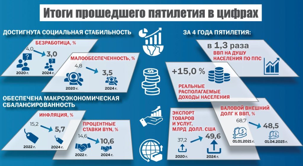 Программа социально-экономического развития Беларуси на 2026 — 2030 годы утверждена на втором заседании VII Всебелорусского народного собрания. Впрочем, говорить о нашем будущем без привязки к итогам прошедшей пятилетки невозможно. Как развивалась наша страна? Насколько были выполнены обязательства? Эксперты подчеркивают: изменения оказались весьма качественными и коснулись в первую очередь комфортной жизни нашего населения. Подводим итоги.