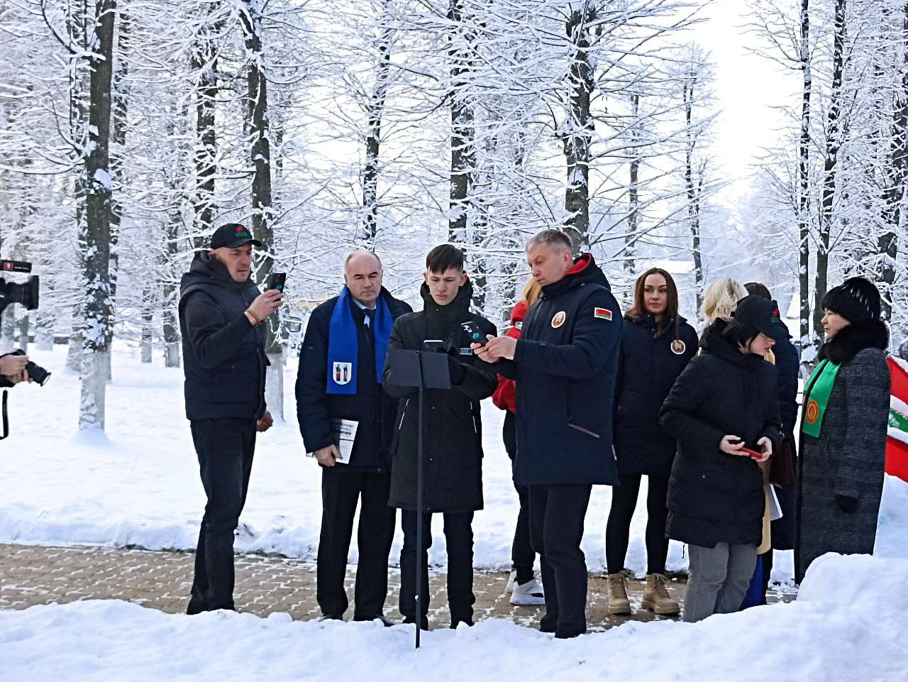 Участники акции «Символ единства» возложили цветы к подножию памятника-мемориала «Освобождение», установили табличку с QR-кодом в парке Победы и провели митинг.