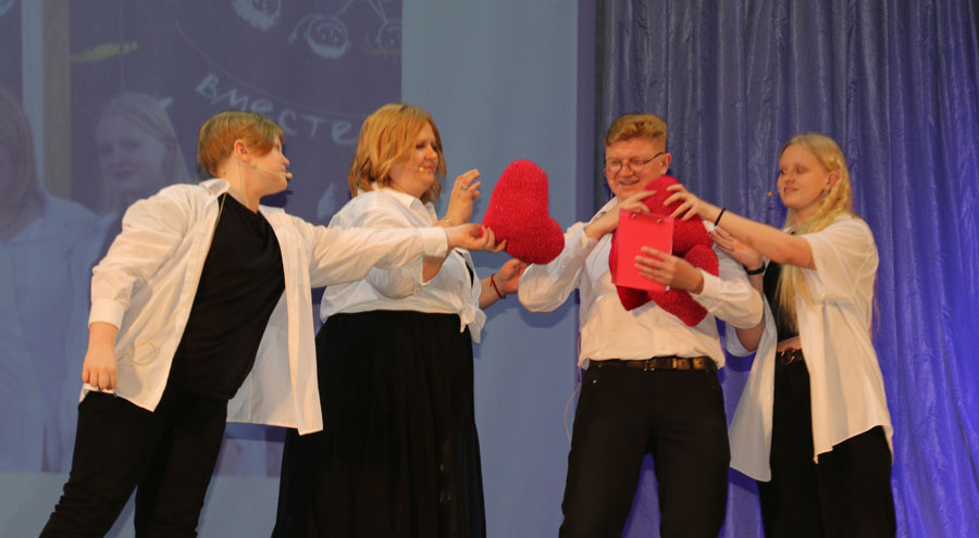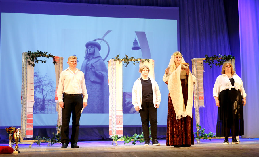 На сцене Дома культуры в Солигорске Меркульевы делились своим секретом семейного счастья: «готовили» каравай – символ дружбы, мира и согласия, гостеприимства и щедрости. А главные ингредиенты каравая – любовь, увлечение, творчество, он согрет огнем семейных традиций, передаваемых из поколения в поколение.