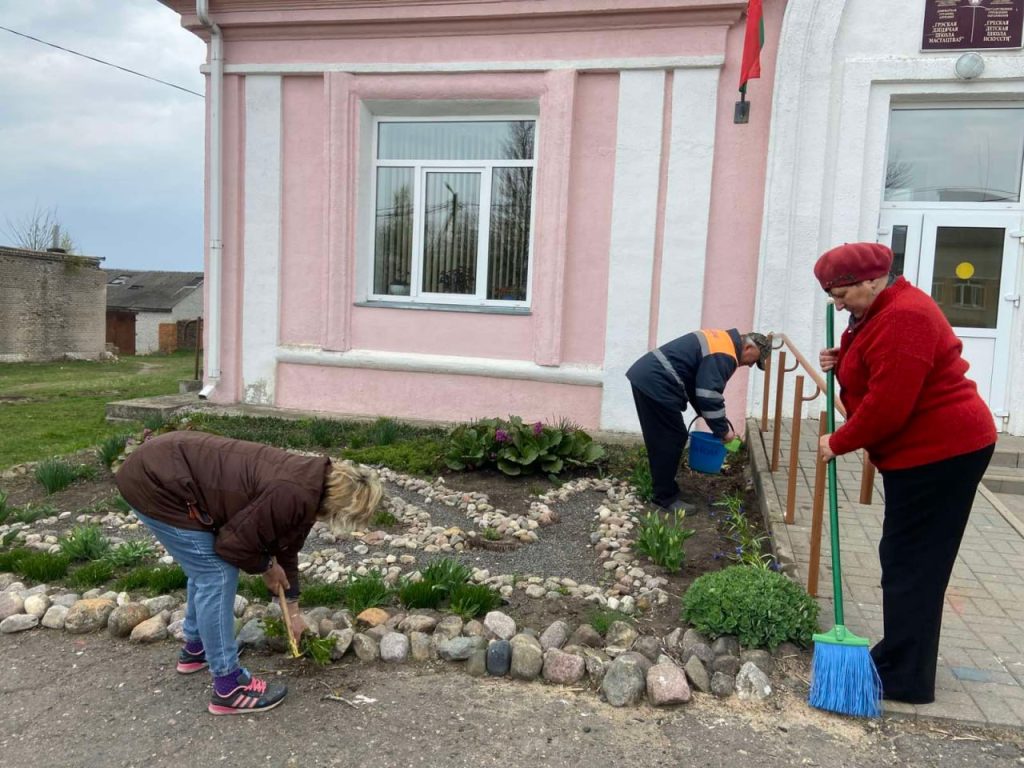 Предприятия, организации и учреждения района активно проводят работы по наведению порядка и благоустройству территорий: сгребают листву, белят деревья, садят цветы, обустраивают места воинской славы.