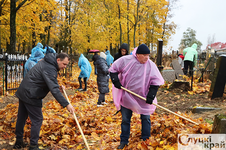 Несмотря на непогоду с хорошим настроением слутчане активно участвуют в республиканском субботнике. На территории городского кладбища по улице 14 Партизан к работам по благоустройству подключились работники Слуцкого районного исполнительного комитета. Председатель Слуцкого райисполкома Владимир Гога, председатель Слуцкого районного Совета депутатов Александр Курак, заместители председателя райисполкома, руководители управлений и отделов, сотрудники выполнили немалый фронт работ: убирали листву и мусор, вырезали сорную растительность. В работах приняли участие более 90 человек.