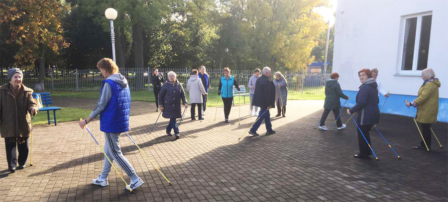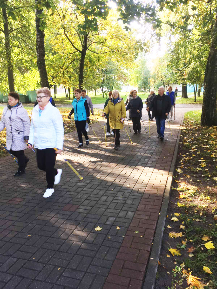 30 сентября на стадионе «Городской» граждане, посещающие отделение дневного пребывания для инвалидов и граждан пожилого возраста Слуцкого территориального центра социального обслуживания населения приняли участие в марафоне по скандинавской ходьбе «Активное долголетие», приуроченном ко Дню пожилых людей.