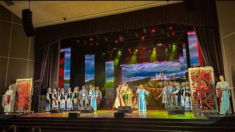Слуцкий район представил программу «Ніці часу» – музыкально-танцевальное полотно, где прошлое и настоящее переплетаются в единый узор. В ней выступили солистки Диана Ромашка и Христина Бруёк, народный хор Козловичского сельского Дома культуры, ансамбль народной песни и музыки «Случанскія святкі», театр танца «Деми-Гран», ансамбль «Конфетти», а также актеры Маргарита Пасецкая, Алина Драко, Марина Аленикова и Татьяна Наумович. Их номера стали настоящим мостом между поколениями, напоминая зрителям, что народное искусство живёт и развивается, сохраняя корни и открывая новые горизонты. Декорации для сцены подготовили мастера Слуцкого районного центра народного творчества Ольга Ворошкевич и Евгения Купрейчик.