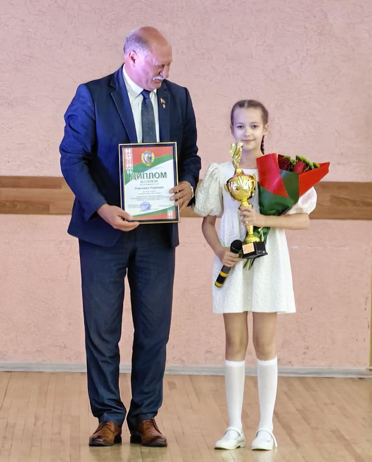 Слутчане, победители областного тура, Мария Забаровская (ГУО «Средняя школа № 13 г. Слуцка»; номинация «Слаўся, зямлi нашай светлае iмя!»), Надежда Уласовец (ГУО «Слуцкая детская школа искусств»; номинация «Звонкая радуга», Виктор Волохов (ГУО «Слуцкая детская школа искусств»; номинация «Песня остается с человеком») представили на конкурсе организационную структуру г. Минска и Минской области ДОСААФ перед компетентным жюри.