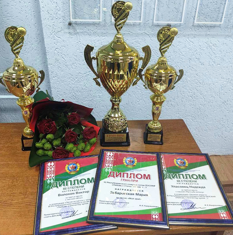 По итогам ХI Республиканского конкурса песни ДОСААФ в номинации «Песня остается с человеком» Виктор Волохов с песней «Мацi» занял 3-е место,в номинации «Звонкая радуга» Надежда Уласовец с песней «Просьба Ангелу» – 3-е место. Гран-Приконкурса завоевала Мария Забаровская с песней «Мой край».
