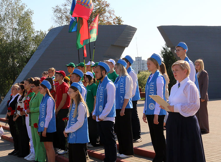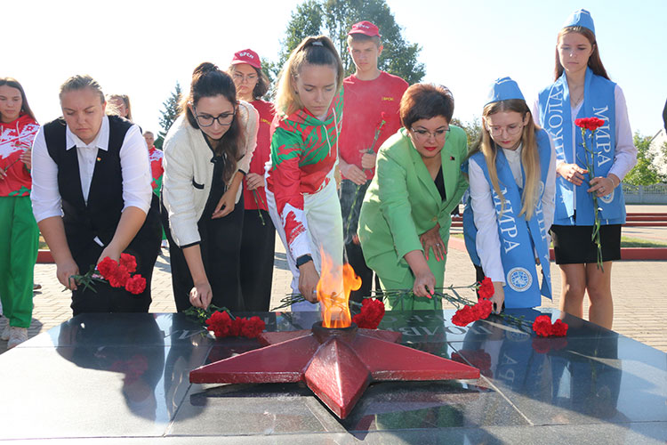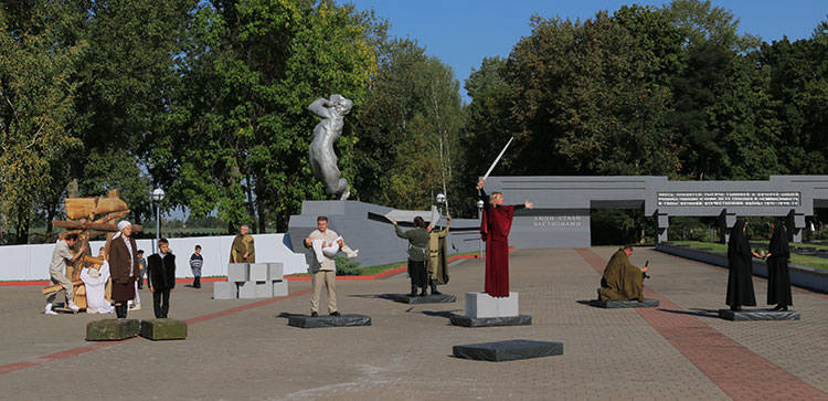 Началось мероприятие с митинга-реквиема, во время которого была продемонстрирована театрализованная постановка “Люди в камне”, и возложения цветов к вечному огню на мемориальном комплексе Слуцка.