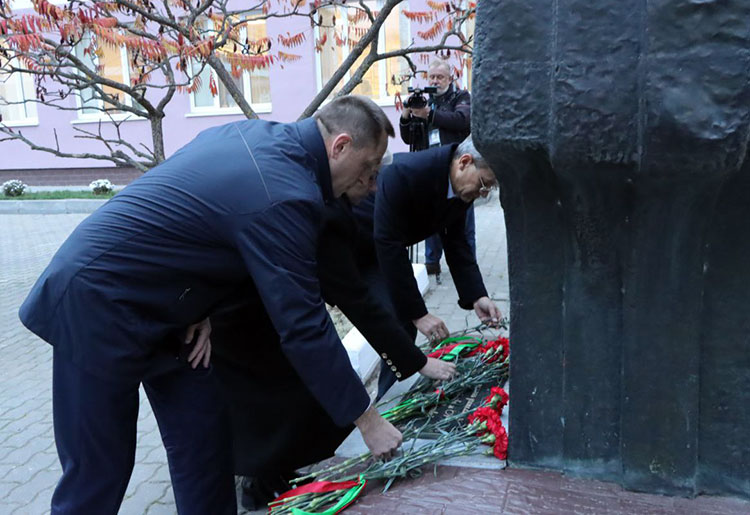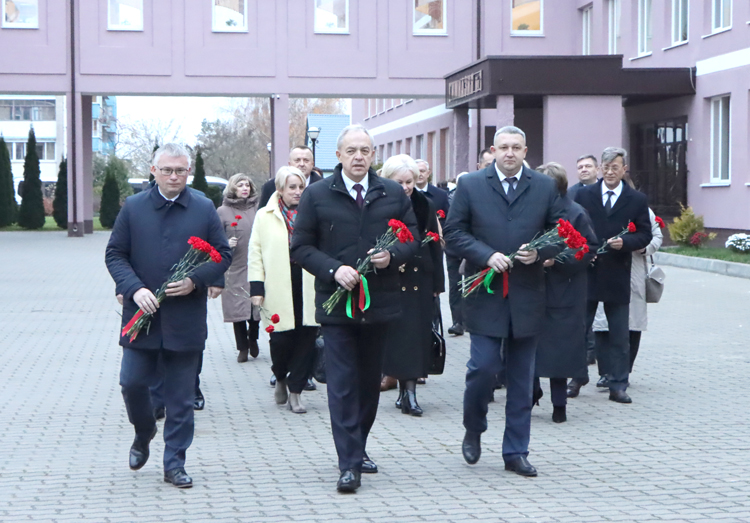 Парламентарии возложили цветы к памятнику погибшим в годы Великой Отечественной войны учителям школы №1 в Слуцке. Памятник уникален тем, что инициирован выпускниками 1941 года. В 1987 году он был установлен на средства педагогов и бывших выпускников учреждения образования в память об учителях и учениках, которые ушли на войну и не вернулись.