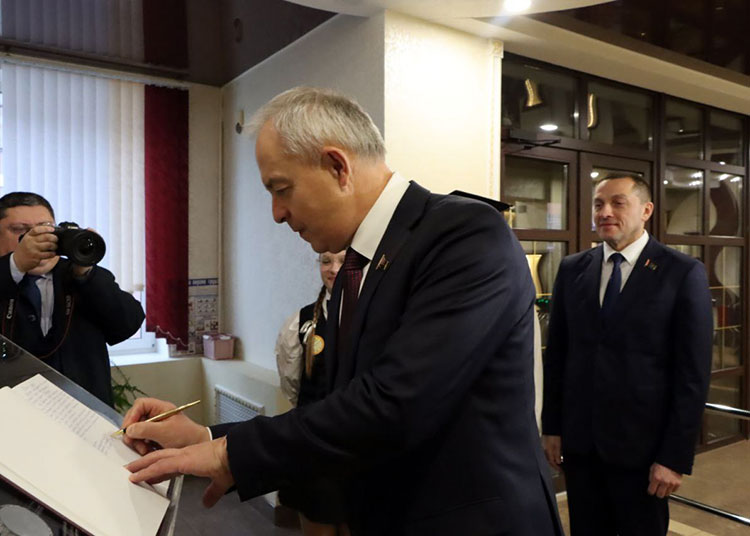 Председатель Палаты представителей Национального собрания Республики Беларусь Игорь Сергеенко оставил запись в книге Почетных гостей.