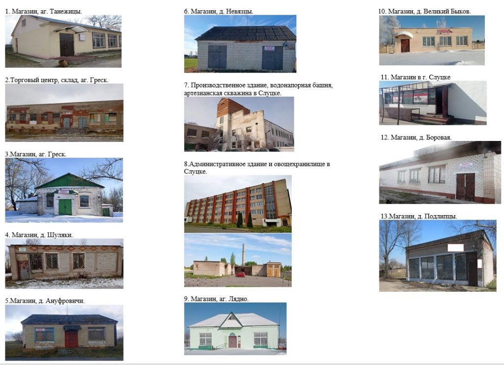Торговое унитарное предприятие «Слуцкий рынок ОПС» сдает в аренду и продает здания в Слуцком районе.