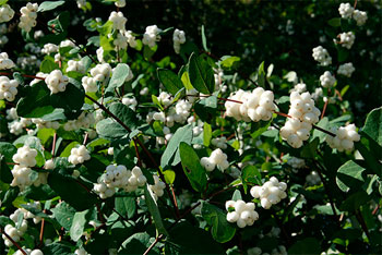 Белые ягоды-шарики не «тают» на кусте до весны и даже в «жадную» зиму всегда в природе будет заснеженный закуток. Содержимое белых бусин служит кормом птицам (зеленушка, лазоревка, снегирь, кольчатая горлица), которые разносят семена по округе. В свое время, таким способом снежноягодник из Франции, куда был завезен два столетия назад из Северной Америки, постепенно распространился на европейские земли. И хоть у нас может расти в диком состоянии, но любит человеческое внимание, когда за ним ухаживают – попросту стригут. Тогда он становится густым и пышным, пригодным для ландшафтного дизайна. Живая изгородь из кустов снежника изящна и красива во все времена года. Это растение универсально тем, что может произрастать в весьма неблагоприятных условиях, тем не менее, бесхитростно дарит неповторимый колорит в самые непроглядные дни.