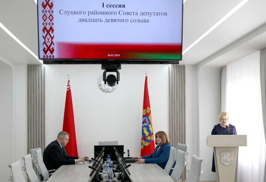 Состоялась первая сессия Слуцкого районного Совета депутатов 29-го созыва. Участие в ней приняли председатель Слуцкого районного исполнительного комитета Владимир Гога, председатель Слуцкого районного Совета депутатов 28-го созыва Наталья Овсянникова, избрана депутатом Палаты представителей Национального собрания Республики Беларусь восьмого созыва, заместители председателя райисполкома, начальники отделов и управлений, депутаты районного Совета депутатов 29-го созыва, председатели сельисполкомов.