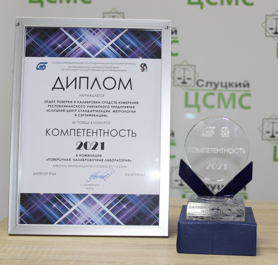 Отдел поверки и калибровки средств измерений РУП «Слуцкий ЦСМС» признан победителем в конкурсе «КОМПЕТЕНТНОСТЬ – 2021» в номинации «Поверочные и калибровочные лаборатории».