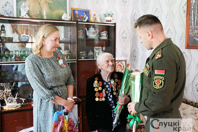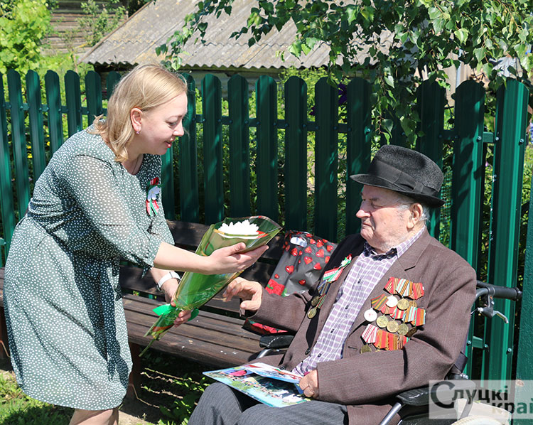 В торжественной обстановке нашим славным ветеранам вручили поздравительные открытки от Слуцкого районного исполнительного комитета, цветы и подарки.
