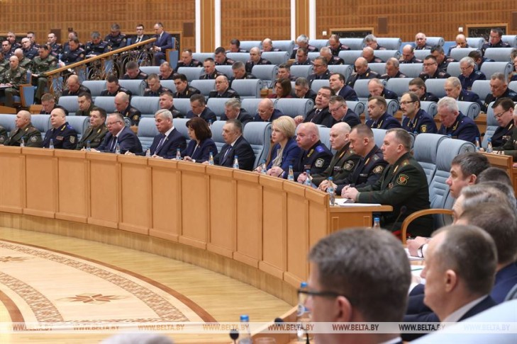 “Высочайший уровень внешних угроз для Беларуси вынуждает нас обратить самое пристальное внимание и на угрозы внутренние. Тем более что это – звенья одной цепи. Актуальность темы совещания отражают последние сводки. В общих чертах ситуацию вы знаете. Но расслабляться, как я всегда говорю, не время. На днях в Гродно был нейтрализован заброшенный к нам иностранный террорист”, – сказал Президент.