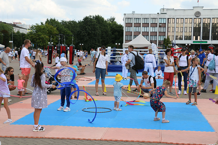 На центральной площади Солигорска прошли спортивные соревнования и конкурсы. Каждый желающий мог принять в них участие, проверить свои возможности в различных видах спорта, выполнить задания и получить ценные призы. Для участников работали фуд-корт, зона семейного отдыха и выставка-продажа “Белорусские бренды”.
