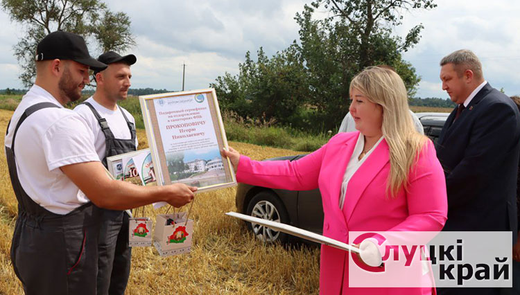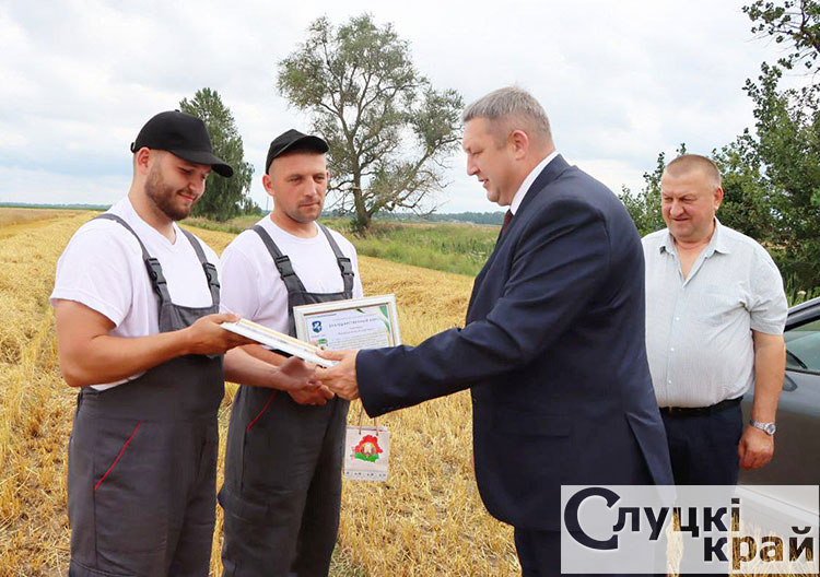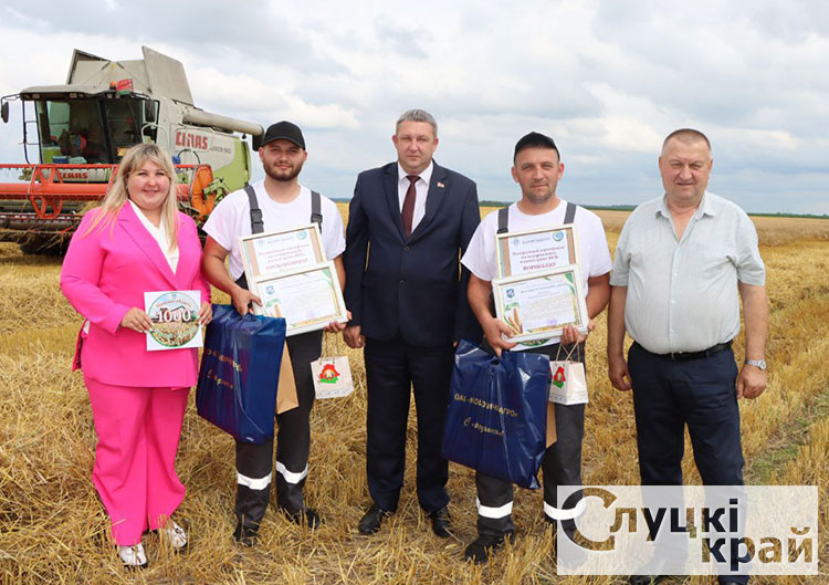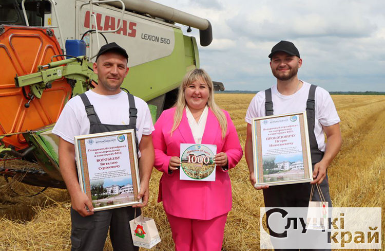 Поздравили лидеров уборочной страды председатель Слуцкого районного исполнительного комитета Владимир Гога и председатель райкома профсоюза работников АПК Татьяна Гурбо. Благодарственные письма, подарочные сертификаты вручили комбайновому экипажу, а ещё подарочные сертификаты на приобретение путевки на оздоровление в санатории Федерации профсоюзов Беларуси.