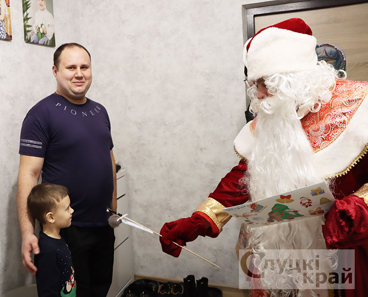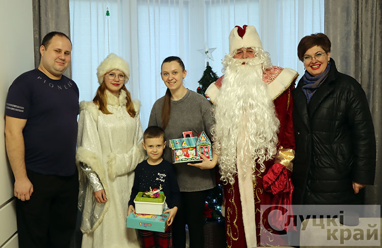 Вместе с Дедушкой Морозом и Снегурочкой Елена Ивановна пришла в гости к шестилетнему слутчанину Матвею.