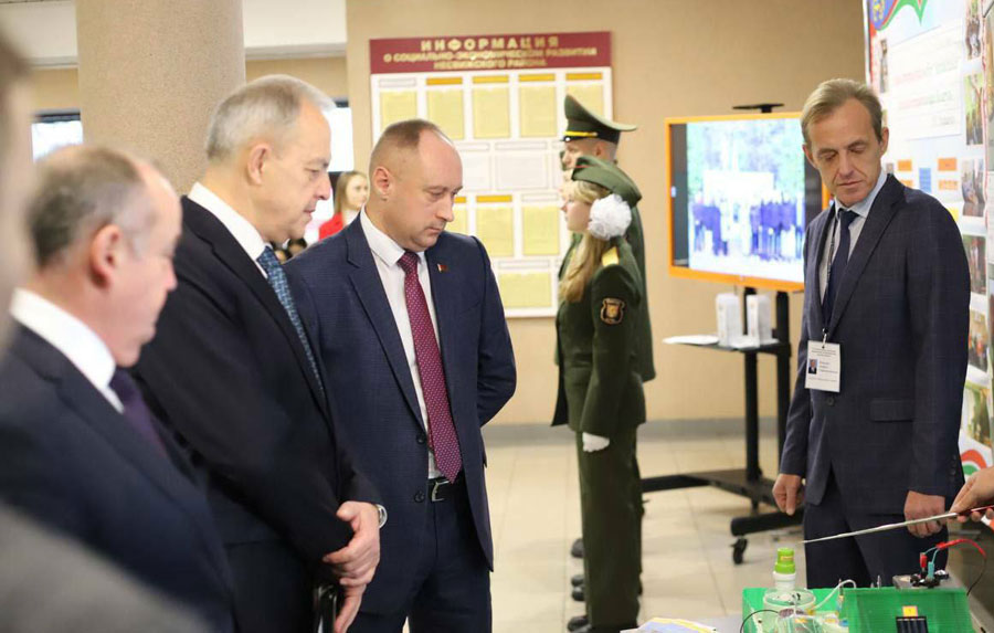 Предварительно Глава Администрации Президента ознакомился с опытом организации досуговой занятости молодежи, деятельностью школьных военно-патриотических клубов – в фойе райисполкома организована тематическая выставка.