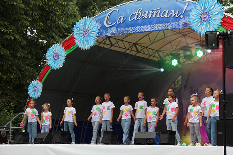 Хорошим их продолжением стали праздничный концерт «Тебе, Беларусь, посвящается!» и концертная программа «Квітней, родная Беларусь!», которые ладились в городском парке культуры и отдыха. Здесь в исполнении творческих коллективов района, детских вокальных групп звучало немало самых разных душевных песен о любви к Родине, о признательности солдатам, которые когда-то отстояли мир на нашей, белорусской земле! О красоте ее полей, лугов, лесов и… людей.