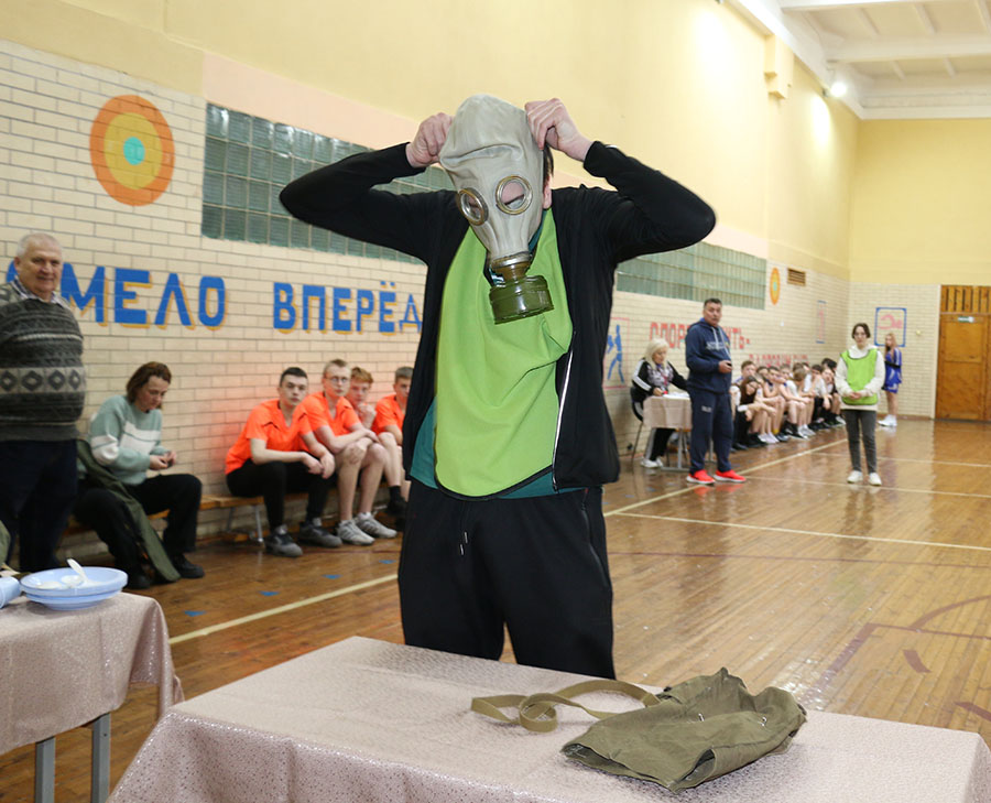 Хорошим продолжением стали соревнования, в том числе военизированная эстафета, где ребята из 12-ти школ города и района, казалось, за считанные секунды разбирали-собирали автомат, его магазин, одевали противогаз, собирали вещмешок.