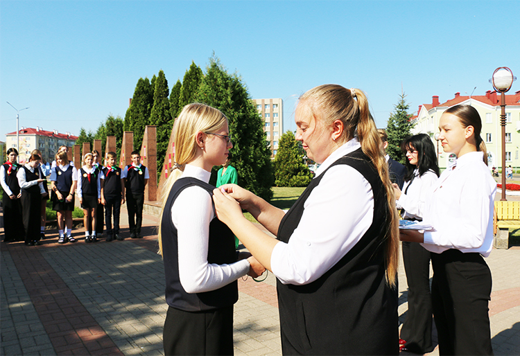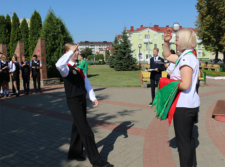 С этим знаменательным событием в их жизни ребят поздравила  первый секретарь  районного комитета общественного объединения «Белорусский республиканский союз молодежи» Виктория Задёра. С напутственным словом к ним обратилась  председатель районного совета  общественного объединения  «Белорусская республиканская пионерская организация» Ольга Шамановская.
